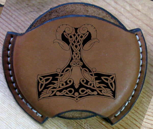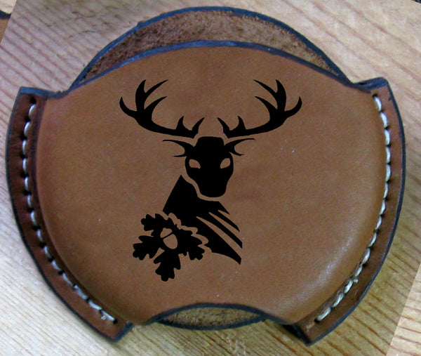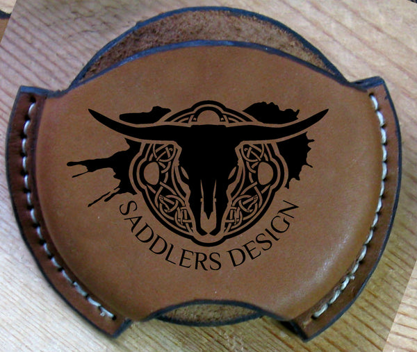 Här har jag tagit fram en snusdosehållare av ett torrare/modernare läder där vi valt att erbjuda inbrända motiv för att få ett stilrent utseende.